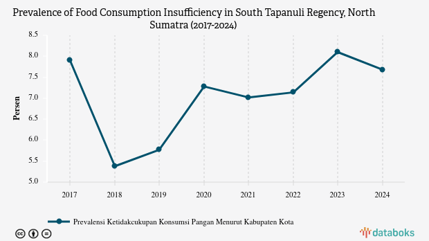 Based on data from the Central Statistics Agency (BPS), the prevalence of undernourishment (PoU) in South Tapanuli Regency, North Sumatra, reached 7.68% in 2024.