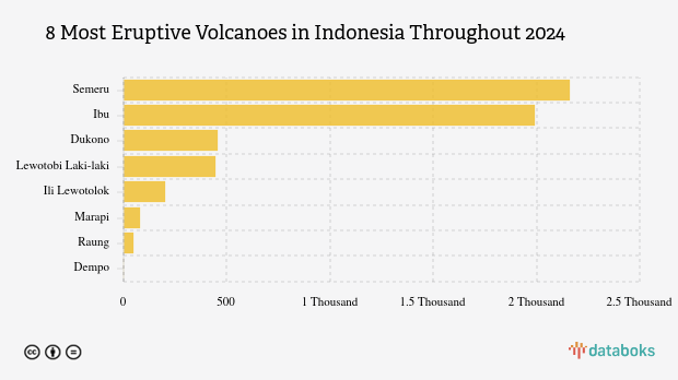Throughout 2025, MAGMA Indonesia has recorded 5,388 volcanic eruptions across Indonesia. Mount Semeru in East Java had the most eruptions (2,163 times) while Mount Dukono erupted 454 times.