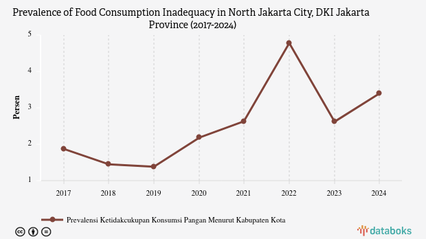 The Central Statistics Agency (BPS) reported that the prevalence of undernourishment (PoU) in North Jakarta City, DKI Jakarta, was 3.39% in 2024.