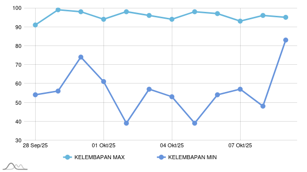 The Meteorology, Climatology, and Geophysics Agency (BMKG) reports light rain in Kota Magelang today. Over the next week, light rain is likely on five days: May 6th, 7th, 8th, 9th, and Sunday, May 11th, 2025. Additionally, Tuesday, May 6th, 2025 will have light rain, and Saturday, May 10th, 2025 will be cloudy. According to BMKG, thunderstorms are not expected in the coming week.