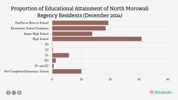 Meanwhile, 10.03% of the population of North Morowali Regency had not completed elementary school. As for residents who are not/haven't been to school, they accounted for 19.36%.