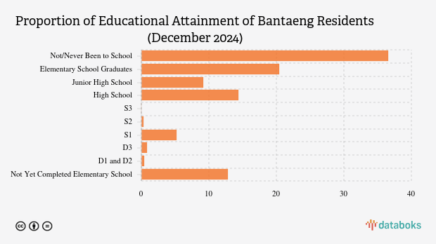 Meanwhile, 12.85% of Bantaeng Regency residents have not completed elementary school. As for the population who are not/have not been to school, it is 36.54%.