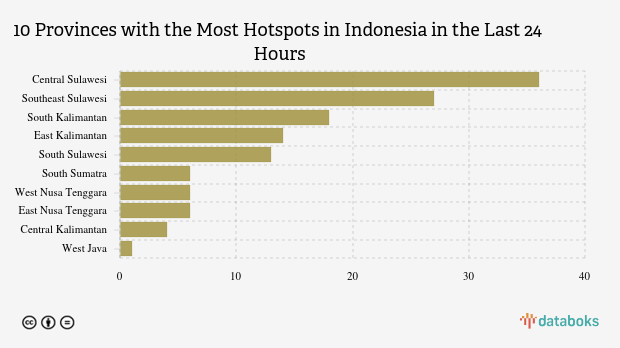 The most detected hotspots were in Central Sulawesi, with 36 points. Southeast Sulawesi ranked second with the highest number of hotspots, with 27 points. South Kalimantan was in third place with 18 hotspots.