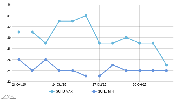 The highest and lowest temperatures in Cilegon City occurred on Sunday, December 22, 2024, ranging from 30°C to 24°C. High humidity levels contribute to the feeling of heat. Here's a detailed weather forecast for Cilegon City for the next week: