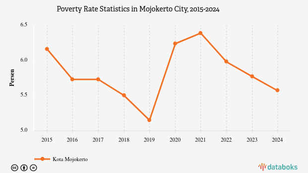The trend of the poverty rate in Mojokerto City over the past 10 years has been decreasing, from an initial poverty rate of 6.16 percent to 5.57 percent.