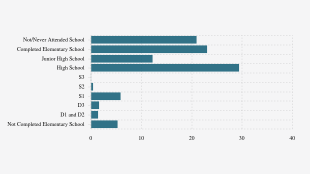 - Not Completed Elementary School: 25.38 thousand people (5.3%)