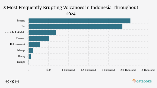 Throughout 2025, MAGMA Indonesia has recorded 6,536 volcanic eruptions across Indonesia. Mount Semeru in East Java erupted the most (2,556 times) while Mount Lewotobi Laki-laki erupted 681 times.