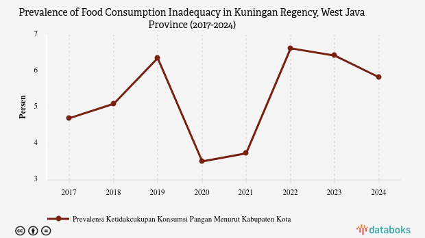 The Central Statistics Agency (BPS) reported that the prevalence of food inadequacy (Prevalence of Undernourishment/PoU) in Kuningan Regency, West Java, was 5.83% in 2024.