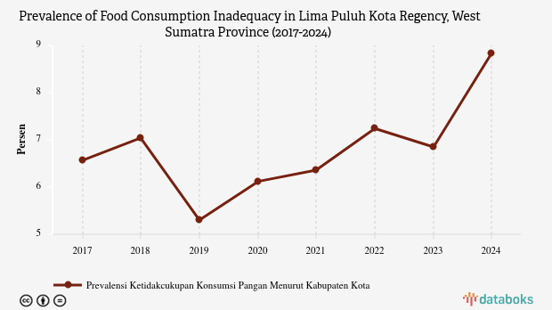 Based on Central Statistics Agency (BPS) data, the prevalence of undernourishment (PoU) in Lima Puluh Kota Regency, West Sumatra, reached 8.83% in 2024.