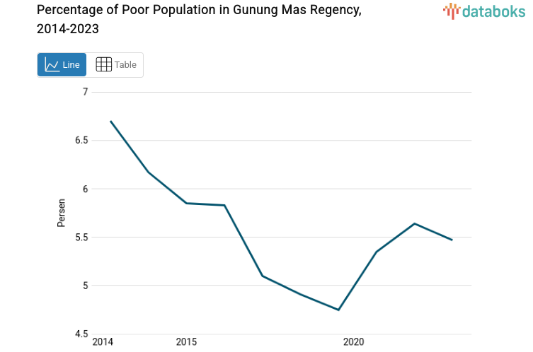 5.47% of the Population in Gunung Mas Regency Falls into the Poor Category