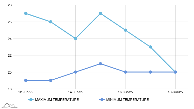 The highest and lowest temperatures in Temanggung occurred on Friday, May 16, 2025, ranging from 26°C and 19°C. Here's a detailed daily weather forecast for Temanggung for the next week: