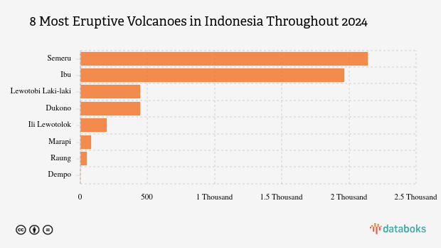 Throughout 2025, MAGMA Indonesia has recorded 5,322 volcanic eruptions across Indonesia. Mount Semeru in East Java had the most eruptions (2,142 times) while Mount Ibu erupted 1,967 times.