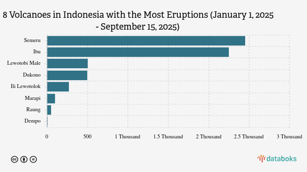 Throughout 2025, MAGMA Indonesia has recorded 6,111 volcanic eruptions across Indonesia. Mount Semeru in East Java has erupted the most with 2,451 eruptions.