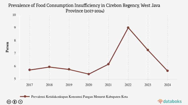 Statistics Indonesia (BPS) reported that the prevalence of undernourishment (PoU) in Cirebon Regency, West Java, was 5.65% in 2024.