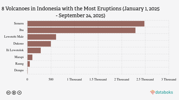 Throughout 2025, MAGMA Indonesia has recorded 6,305 volcanic eruptions across Indonesia. Mount Semeru in East Java has erupted the most with 2,481 times.