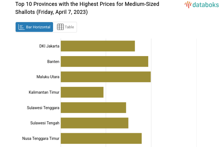 Red Onion Prices, Medium Size, in Jakarta, Highest in Indonesia (Friday, April 7, 2023)