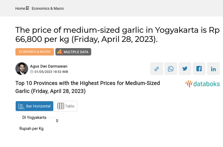 The price of medium-sized garlic in Yogyakarta is Rp 66,800 per kg (Friday, April 28, 2023).