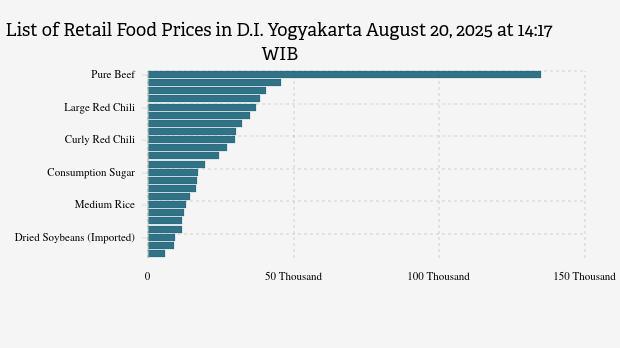 Here is the complete list of 23 food commodity prices in D.I. Yogyakarta according to Bapanas on August 20, 2025 at 14:17 WIB.
