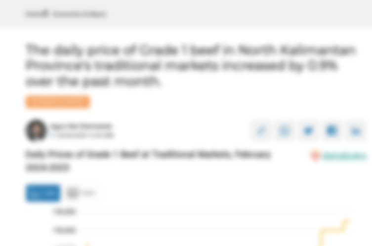 The daily price of Grade 1 beef in North Kalimantan Province's traditional markets increased by 0.9% over the past month.