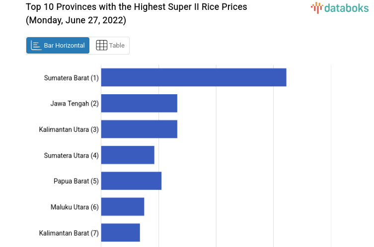 The price of Super II quality rice in West Sumatra is Rp 17,450 per kg (Monday, June 27, 2022)