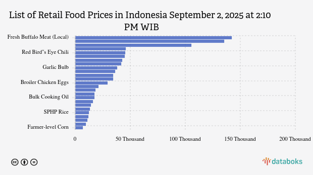 Below is the complete list of 25 food commodity prices in Indonesia according to Bapanas on September 2, 2025, at 2:10 PM WIB.