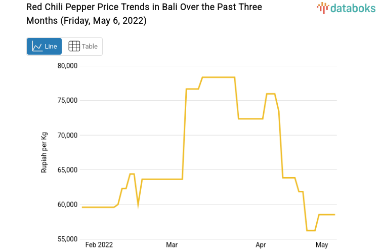 The price of curly red chilies in Bali increased by 4.09% over the past week.