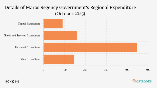 During the period of January 2025 to October 2025, the realization of Maros Regency Government's Regional Expenditure was Rp843.03 billion, equivalent to 50.93% of the 2025 Regional Expenditure budget.