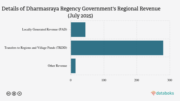 During the period of January 2025 to July 2025, the Dharmasraya Regency Government's Regional Revenue realization was Rp337.57 billion, equivalent to 35.05% of the 2025 Regional Revenue budget.