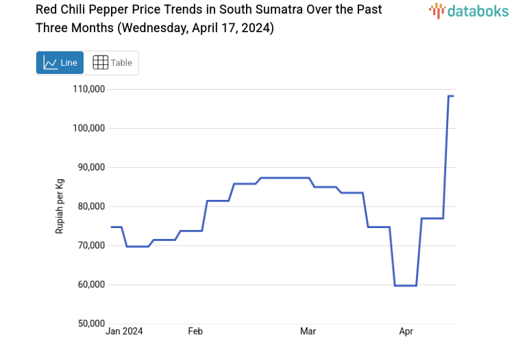 The price of curly red chilies in South Sumatra increased by 81.24% in a week.