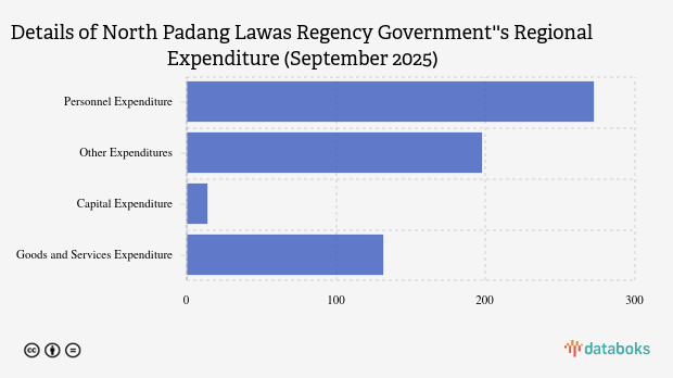 During the period of January 2025 to September 2025, the realization of the North Padang Lawas Regency Government''s Regional Expenditure was Rp615.22 billion, or equivalent to 50.26% of the 2025 Regional Expenditure budget.