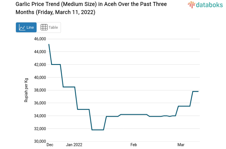 Aceh's average price for medium-sized garlic increased by 6.48% this week.