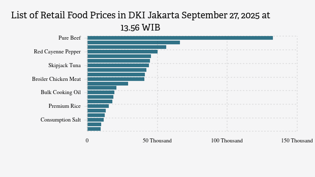 Here is the complete list of 21 food ingredient prices in DKI Jakarta according to Bapanas on September 27, 2025 at 13.56 WIB.