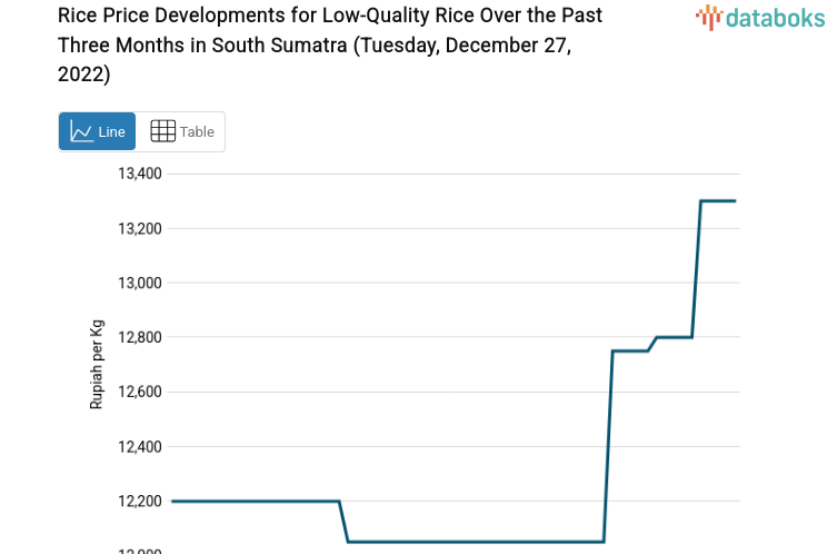 The price of low-quality grade I rice in South Sumatra increased by 3.91% in a week.