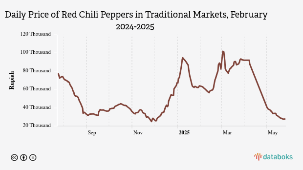 Over the past month, the daily price of red chili peppers in traditional markets has decreased from a previous record of Rp92,950.