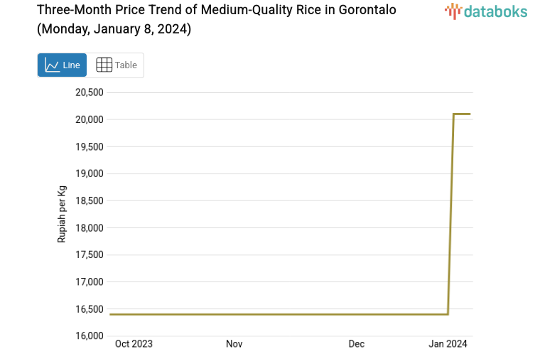 Gorontalo's medium-quality I rice price increased by 22.56% in one week.