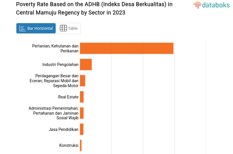 According to its distribution level, the main sector contributing the largest growth to the GRDP in Mamuju Tengah Regency is the agriculture, forestry, and fisheries sector, with a contribution of 69.56%. Other sectors in the top five are the manufacturing industry sector, the wholesale and retail trade, repair of motor vehicles and motorcycles sector, the government administration, defense, and mandatory social security sector, and the real estate sector.