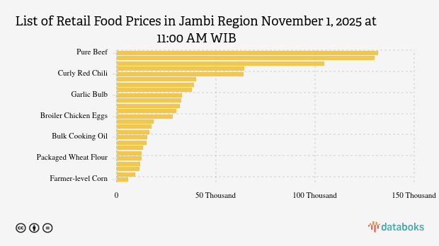 Below is the complete list of 25 food commodity prices in Jambi according to Bapanas on November 1, 2025, at 11:00 AM WIB.