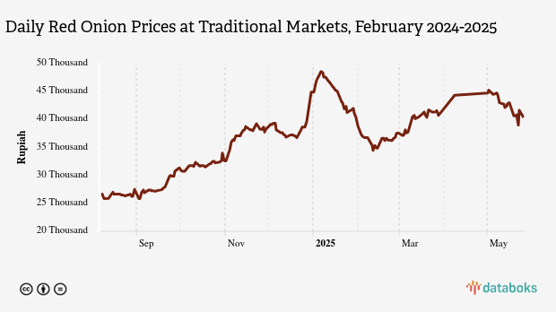 Compared to the price 30 days ago, the daily price of shallots in traditional markets has decreased from Rp47,150.