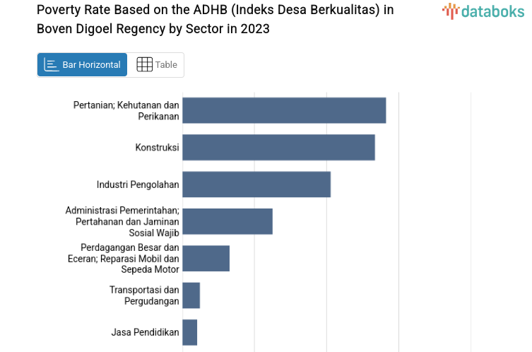 According to its distribution, the main sector contributing the most to GRDP growth in Boven Digoel Regency is the agriculture, forestry, and fisheries sector, with a contribution of 26.3%. Other sectors in the top five are construction, manufacturing, public administration, defense, and compulsory social security, and wholesale and retail trade, repair of motor vehicles and motorcycles.