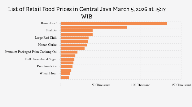 Below is the complete list of 16 food commodity prices in Central Java according to SP2KP Kemendag on February 6, 2026 at 15:17 WIB.