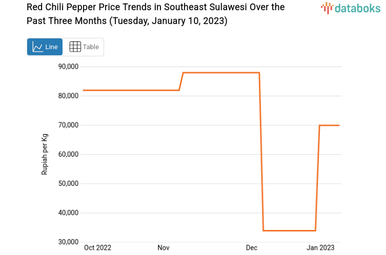 The price of curly red chilies in Southeast Sulawesi has increased by 106.19% in a week.