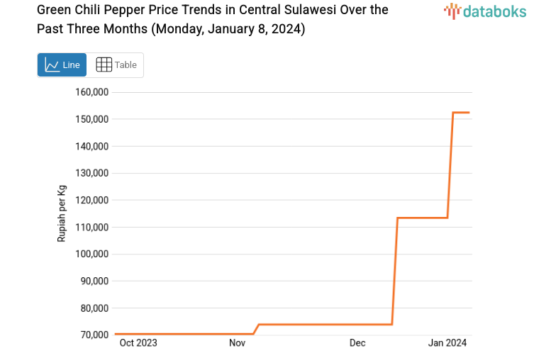 Green chili prices in Central Sulawesi rose 34.38% this week.