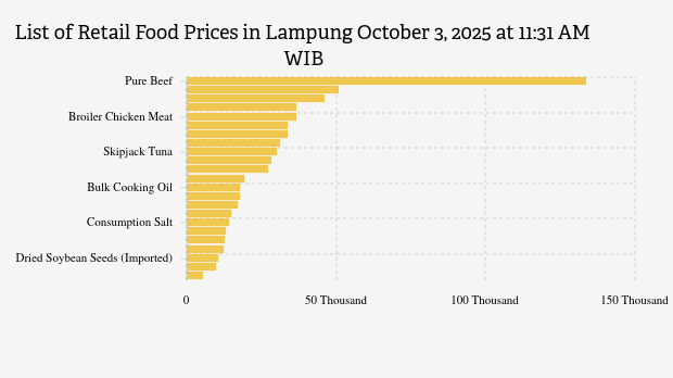 Below is the complete list of 23 food ingredient prices in Lampung according to Bapanas on October 3, 2025 at 11:31 AM WIB.