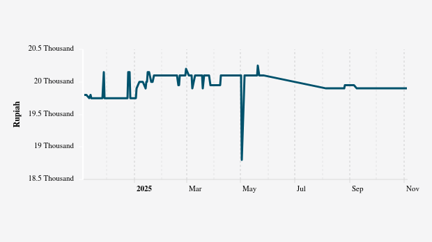 25. Granulated Sugar per Kg Rp19,250 per kg (up 0.52%)