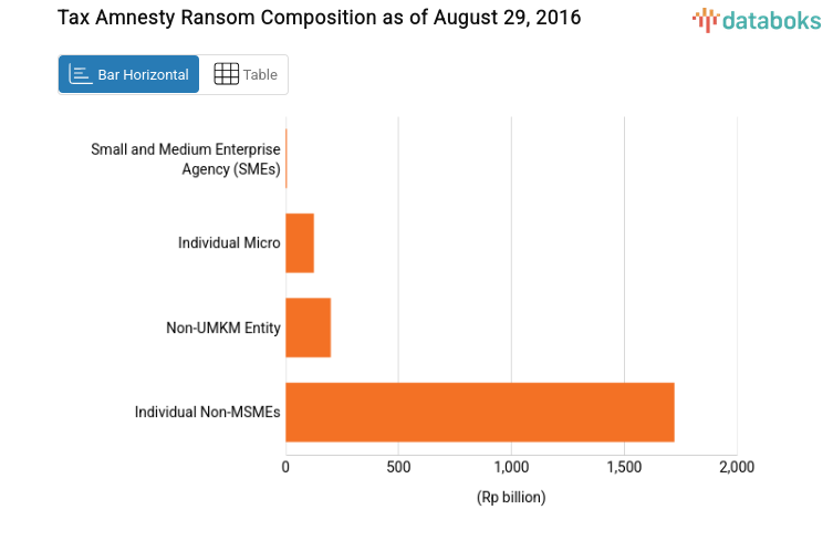 The government targets Rp 165 trillion in state revenue from the tax amnesty program by its end date on March 31, 2017. This tax amnesty revenue is expected to offset the projected Rp 219 trillion shortfall in tax revenue by the end of 2016.