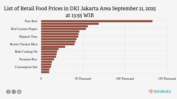 Below is the complete list of prices for 21 food commodities in DKI Jakarta according to Bapanas on September 21, 2025, at 13:55 WIB.