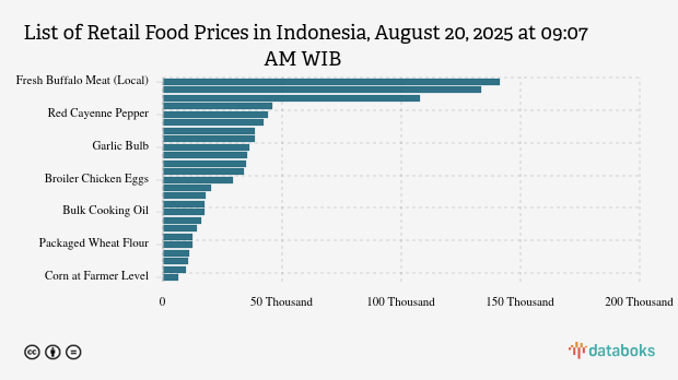 Here is the complete list of prices for 25 food commodities in Indonesia according to Bapanas on August 20, 2025, at 09:07 AM WIB.