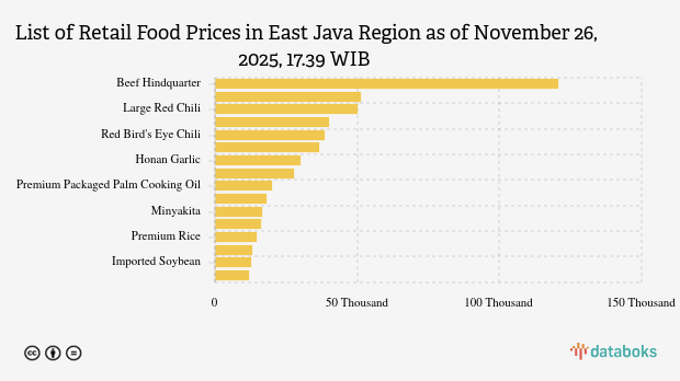 Here is the complete list of 16 food commodity prices in East Java according to SP2KP Kemendag on November 26, 2025, at 17.39 WIB.