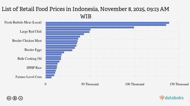 - Fresh Buffalo Meat (Local): Rp138,529 per kg (down 2.09%)