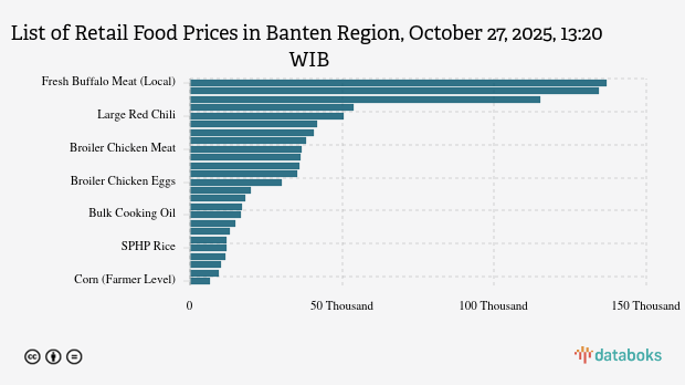 Here is the complete list of 25 food commodity prices in Banten according to Bapanas on October 27, 2025, at 13:20 WIB.
